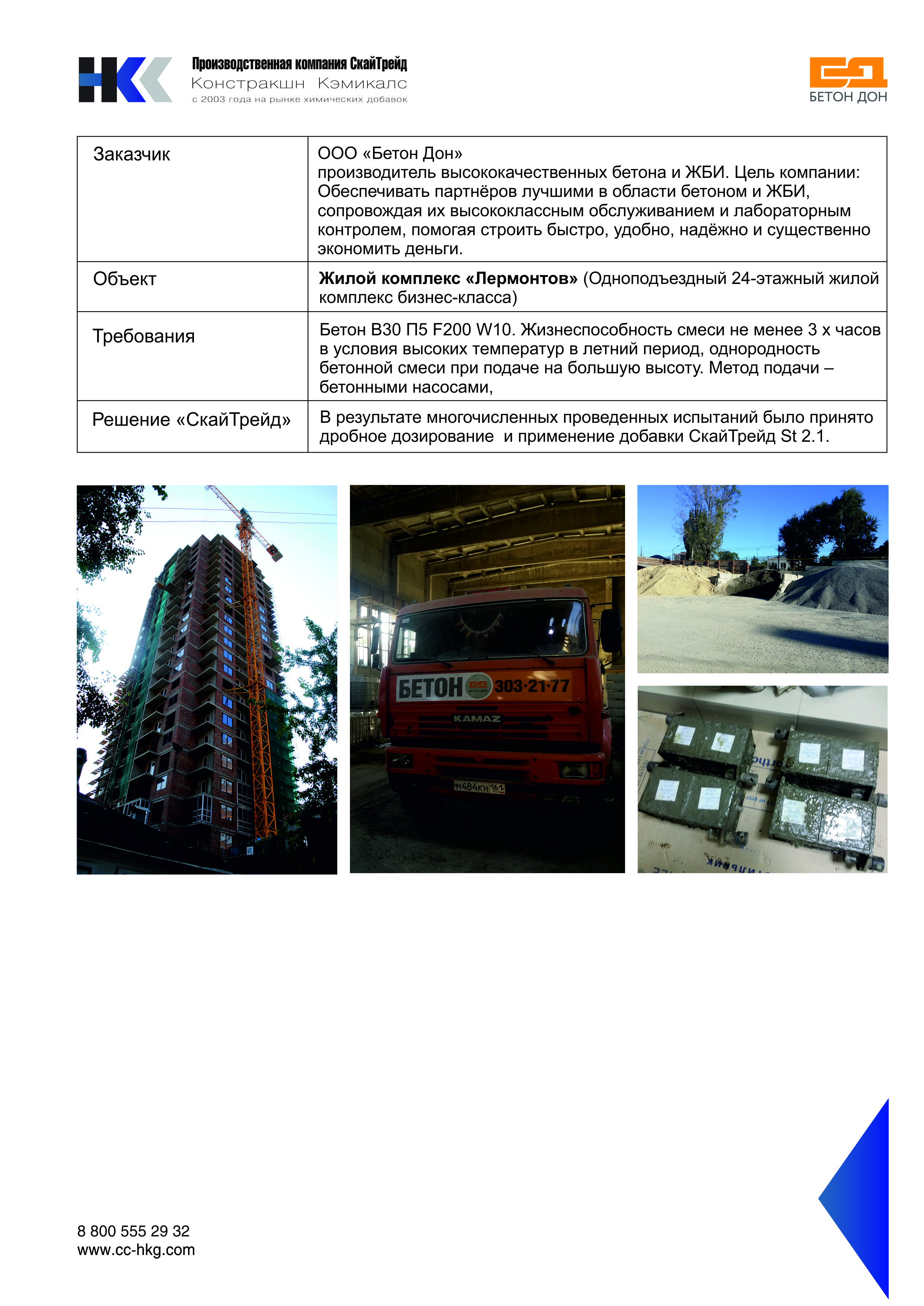 Бетон В30 П5 F200 W10. Жизнеспособность смеси не менее 3 х часов в условия высоких температур в летний период, однородность бетонной смеси при подаче на большую высоту. Метод подачи – бетонными насосами,